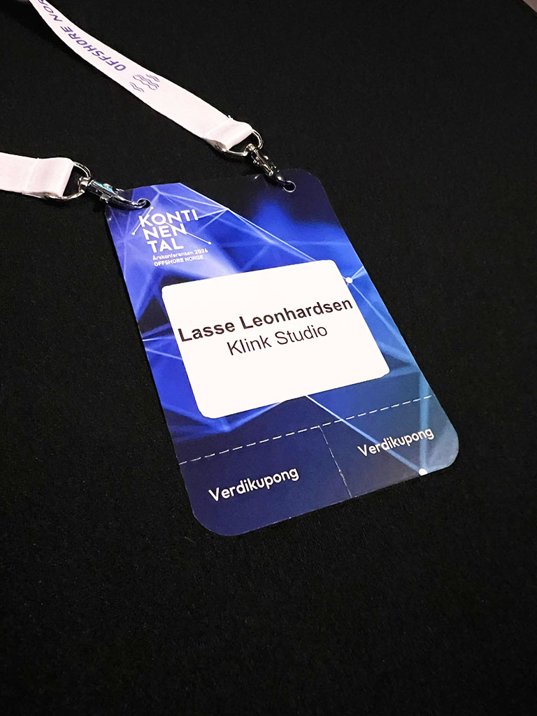 Vi utviklet et grafisk univers basert på et nettverk av forbindelseslinjer og noder – en visuell metafor for de usynlige koblingene mellom land og kontinenter. Den dype blå-til-turkise fargepaletten gir et uttrykk som er kraftfullt og sofistikert, uten å bli kaldt i det industrielle lokalet på Skur 13. Logoen «KONTINENTAL» ble integrert med nettverksgrafikken, der linjene og punktene binder bokstavene sammen som en del av det større systemet. Resultatet var et grafisk univers som skalerte sømløst fra den buede sceneskjermen på Skur 13 til et klistremerke på 71×53 mm – og som ga konferansen en visuell tyngde som matchet agendaen.